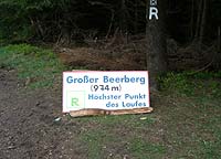 Kilometer um Kilometer geht es bergauf, manchmal eben, nur selten bergab. Trotz des einsetzenden Regens sind es sehr angenehme 25 Kilometer bis zum 916 Meter hohen Großen Inselberg, den ich nach 2:45 Stunden erreiche.
