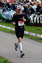Vielmehr meine ich die vielen Läuferblasen, die anscheinend vor dem Lauf keine Dixi-Klos kennenlernten und die jetzt, kaum war der Stadtrand erreicht, den zugehörigen Läufer unerwartet stoppten. – Vorsicht! Kollisionsgefahr! Plötzlich stoppende Läufer! – Jedenfalls war für mich dieses alle fünf Meter erfolgende Stehenbleiben und Zur-Seite -Austreten sehr ungewohnt (der Läufer im Allgemeinen ist also wirklich ein Hund, allerdings in der Regel wohlerzogen: Er verrichtet sein Geschäft am Straßenrand). Aber vielleicht gehört ja auch dieser Brauch zum geheimen Kult der Veranstaltung, dem Männlein wie Weiblein insbesondere auf den ersten Kilometern huldigen.
