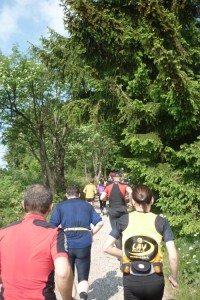 Genauso erging es Rob, einem sehr sympathischen Sportler mit Diabetes, mit dem ich mich über das Diabetesinfo-Form » verabredet und den ich unmittelbar vor dem Geschunkel kennengelernt hatte. Zusammen liefen wir intensiv miteinander redend, Zeit und Strecke vergessend, die ersten zehn Kilometer, ehe ich ihn bei einem Anstieg aus den Augen verlor. Zunächst nahm ich wieder etwas Tempo heraus, drehte mich immer wieder suchend um, entschloss mich dann aber, da ich gar nicht wusste, ob er überhaupt hinter mir war oder vielleicht sogar vorweg lief, einfach weiterzulaufen und drehte etwas an der Temposchraube.