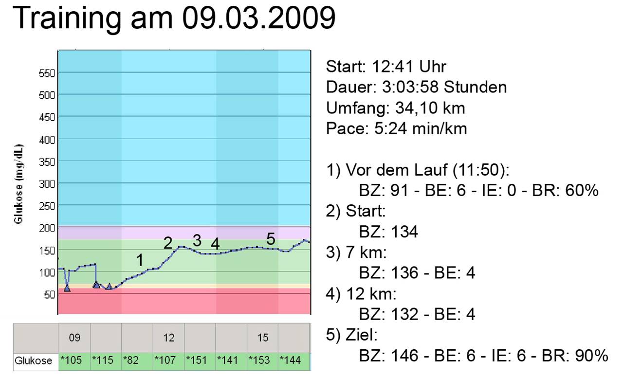 Beim Vergleichen meines ersten langen Laufs für dieses Jahr (vgl. Ende der Eiszeit: Die ersehnte Chance, wieder richtig zu laufen! ») mit Läufen im letzten Jahr, bin ich auf zwei lange Trainingseinheiten gestoßen, deren Blutzucker-Kurven ich schon seit langem veröffentlichen möchte, da diese eindrucksvoll zeigen, wie abhängig die Therapieanpassung von der Tageszeit ist, zu der das jeweilige Training stattfindet.